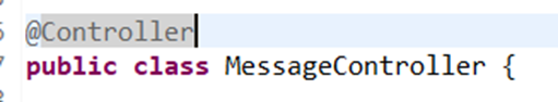 Controller is a class which is checked by Spring boot to find the mapped URI. It has the required annotations. I am creating the controller named MessageController.java and creating a method named showWelcomeMessage.